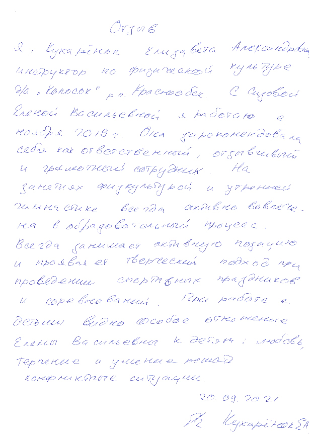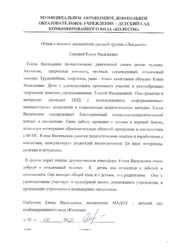 (выдан: Воспитатель МАДОУ д/с "Колосок", 16/09/2021)