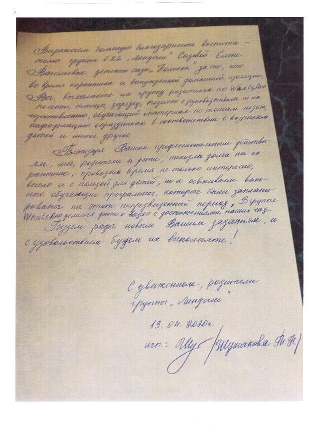 (выдан: Родители детей группы "Ландыши", 13/04/2020)